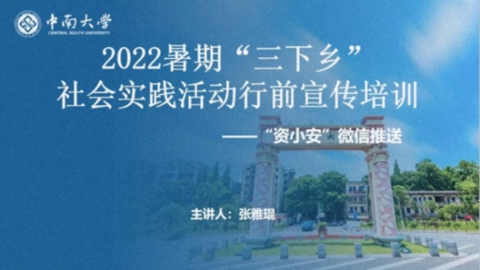 会议伊始,孙瀚老师介绍往年和今年社会实践的总体情况,指出大学生积极参与社会实践的积极意义,着重强调团队应在组织开展社会实践过程中保障自身安全,同时鼓励学生认真踏实做事,努力学习本领。随后,郭兴玥同学介绍社会实践团队成员的主要工作、评优表彰标准以及社会实践活动结束后展示答辩注意事项,为社会实践团体指明了总体路线和大致时间。院团委副书记刘妍麟同学具体介绍社会实践活动中报账注意事项,提出“实报实销、报账最高金额为立项信息表中资助金额、发票不合理不予报账”总要求。宣传工作是社会实践活动中重要的一环,新闻稿和微信推文的撰写尤为重要。新闻部王卓娅同学从新闻稿的撰写、投稿流程、稿件审核流程等方面绍新闻稿相关事项;网宣部张雅琨同学从投稿主题、投稿推送模板、投稿推送要求三个方面讲解“资小安”微信推文的撰写。会议最后,由郭兴玥同学进行暑期社会实践安全培训并详细介绍实践总则、每日安全汇报、问题预防措施、事故处理具体事宜等事项。