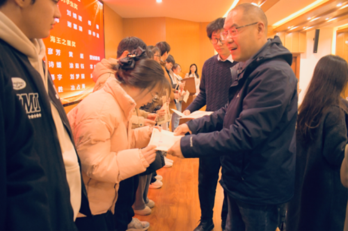 覃文庆院长对获奖学生表示热烈祝贺,并再次对海王公司主动承担社会责任、助力教育事业的发展、关注学生的成长成才的行为表示崇高的敬意与真挚的感谢。他寄语青年学子要坚定顽强努力拼搏、不负青春韶华、不负时代重托,挺膺担当,积极作为。