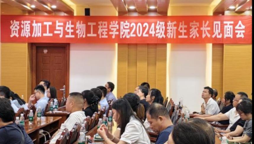 2024年9月7日上午,资源加工与生物工程学院于在生物楼301报告厅召开2024级本科新生家长见面会。资源加工与生物工程学院院长覃文庆、副院长王军、李光辉、党委副书记刘若华及学院各系室主任、2024级本科新生班导师、学工办辅导员参与本次见面会。会议由刘若华主持。