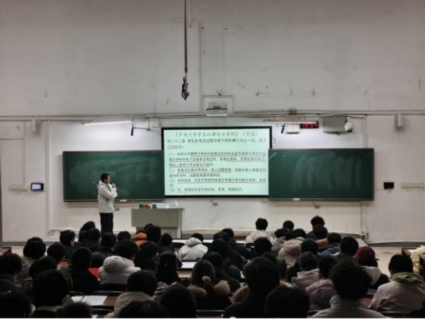 在诚信应考教育部分,胡老师对学校考试纪律及相关违纪处分规定进行了详细解读。他强调,诚信是为人之本,考试作弊不仅违背学术道德,也将导致严重的纪律后果。胡老师鼓励同学们端正学习态度,科学规划复习进度,以扎实的知识储备和诚信的考场表现迎接期末考试。