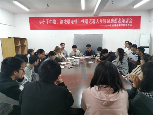 11月12日晚9:30,由资源生物学院青志协举办的“小小手中物,浓浓敬老情”情暖迟暮人生项目志愿者培训会在william威廉英国官网升华公寓25栋706室顺利召开。本次会议由青志协会长荆涛主持,活动志愿者们参会。