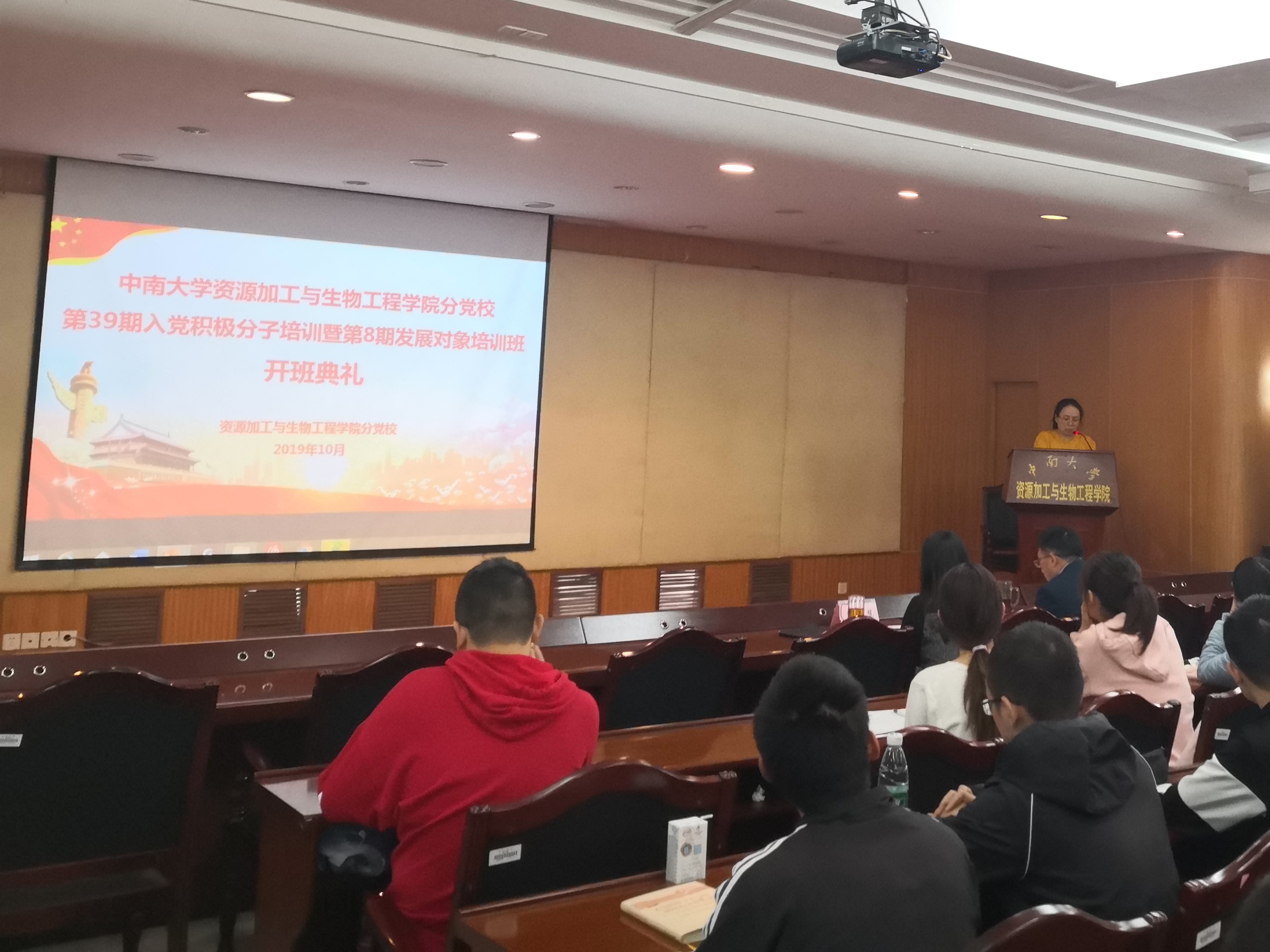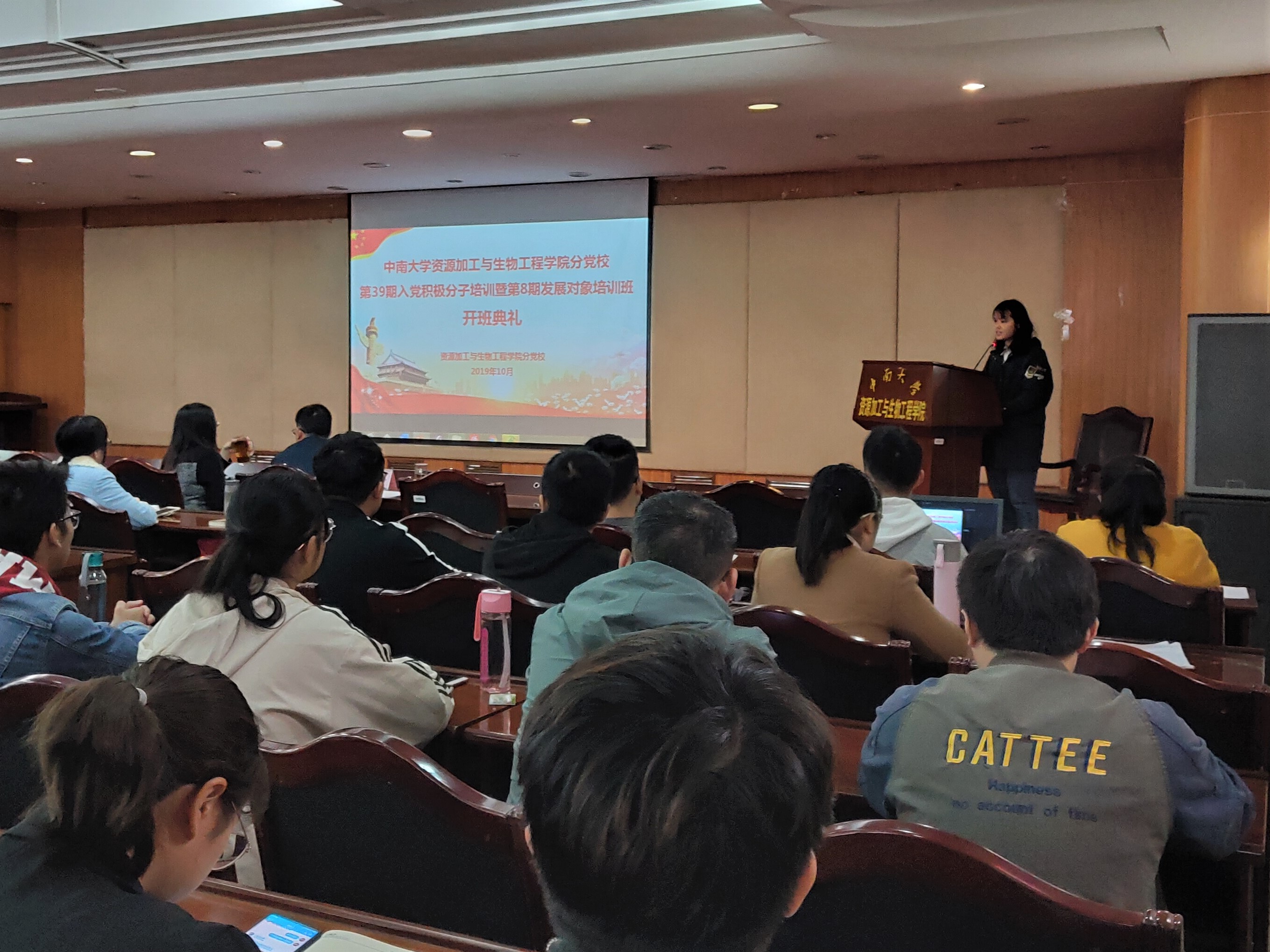 10月26日上午,william威廉英国官网党校资源加工与生物工程学院分校第39期入党积极分子培训班、第8期发展对象培训班开班典礼在生物楼301举行。资源加工与生物工程学院党委书记、分党校校长范晓慧,党委副书记、分党校副校长朱忠平,党委组织员、分党校培训班班导师杨阳出席,典礼由劳思霖同学主持。