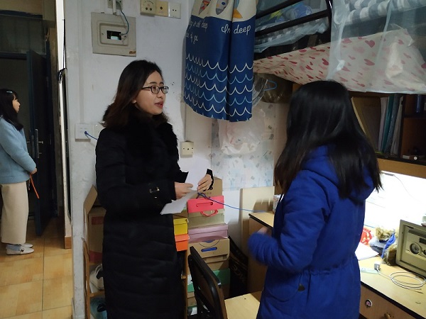 热依拉老师心系新疆籍学生,在走遍15级寝室后,依次走访了每一间新疆籍学生的寝室,与他们亲切交谈,并聆听他们目前感受到的学业与生活上的困惑,结合自身经验为他们指点迷津。热依拉老师表示,新疆籍学生基础普遍薄弱,所以要更加勤奋,不懂就问,只要足够努力,一定会取得优秀的成绩。