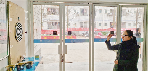 扔飞镖送奖品活动吸引了每位进出楼栋的女生,许多女生对这个活动非常好奇,但是由于从未尝试过,担心投不中。在工作人员的详细介绍下,纷纷尝试体验,突破自我,最终抱得大奖归!