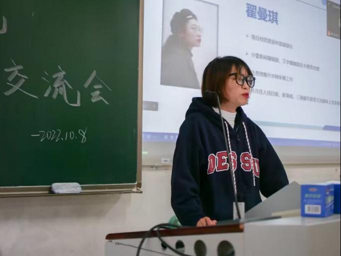 会议伊始,翟曼琪老师从专业角度出发,为学生们介绍了新闻的定义、特点和构成要素,然后依次讲解了新闻稿件的格式以及不同部分的要求与注意事项。接着,她总结归纳了学生们写新闻稿存在的常见问题,提醒同学们在新闻写作时要注意避开常见误区,规范新闻写作。