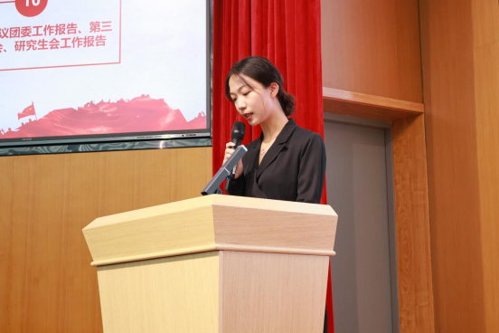 在通过一系列议案后,院团委书记刘乐老师作题为《不忘初心牢记使命锐意开拓积极进取为双一流建设谱写青春篇章》的团委工作报告,院第三届学生会主席团代表侯晓双作题为《建功新时代谱写新篇章奋进新征程用踔厉奋发的实干迎接二十大召开》的第三届学生会工作报告,研究生会代表周冰星作研究生会工作报告。报告向各位代表详细汇报了过去一年里团委、学生会、研究生会的工作成果,有力推动了学院精神文明建设,同时明确未来工作奋斗目标,科学规划预期指标,为学院双一流建设建言献策,贡献青春力量。