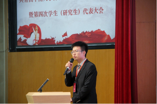 图6:自动化学院第三届研究生会主席周冰星作工作报告