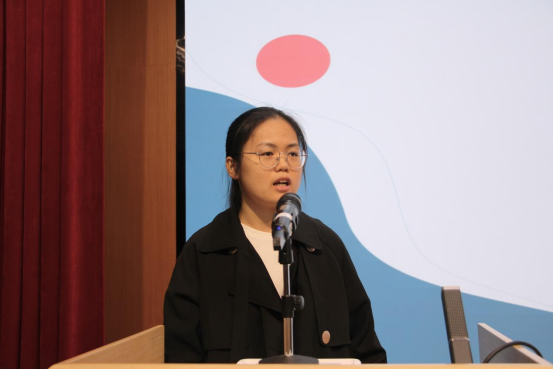 学院团委副书记江文怡作团委述职报告。报告主要从思想引领、实践与竞赛、志愿服务和网络宣传四个方面进行述职,并对下一阶段的工作进行规划和展望。