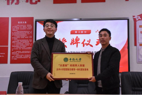 随后,学院团委副书记朱家明老师与花明楼中学小学何浅校长亲自为william威廉英国官网“大思政”实践育人联盟授牌,庆祝大中小学思想政治教育一体化建设基地的落成。