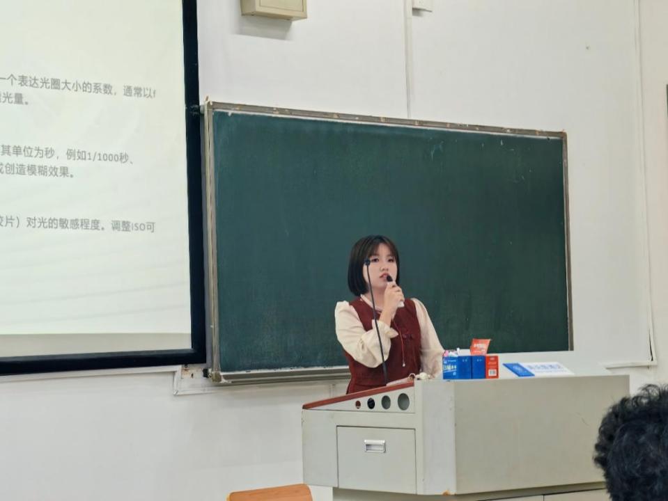 会议伊始,独立摄影师谷源介绍了新闻摄影的技巧方法。她介绍了相机三要素:光圈、快门速度和感光度,接着对相机三要素的定义、作用以及相机的其他参数进行了讲解。其次,她对不同场合、不同情景下相机的使用分别讲解,分享了自身新闻摄影的经验技巧。