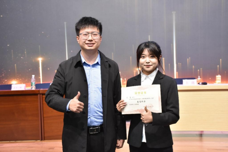 团委书记刘乐老师与最佳辩手姜睿合影