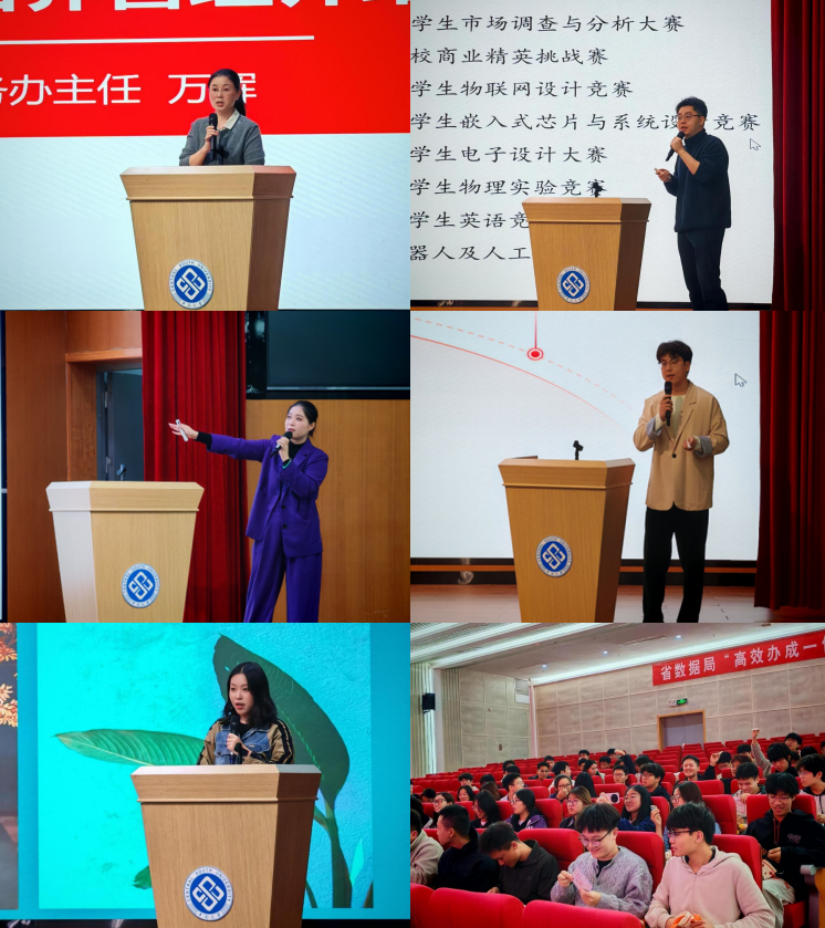 教务办主任万辉为同学们解读课程置换政策、培养方案与学籍管理细则等内容。22级辅导员、科创专干朱家明介绍了与学院学科竞赛情况。24级辅导员双羽根据不同阶段特征为同学们开展大学生职业生涯规划指导。孙博文为同学们介绍年级奖助学金与综测评定相关规则。22级本科生王斯璇围绕转专业学业适应展开经验分享。
