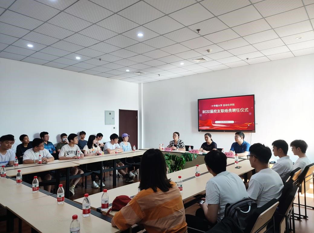 6月8日下午,自动化学院2022届校友联络员聘任仪式在信息楼223会议室顺利举行。自动化学院党委副书记黄亚老师、院办公室主任张仲灵老师、学生工作办公室主任张巧丽老师出席本次聘任仪式。全体2022届校友联络员参加此次聘任仪式,仪式由张巧丽老师主持。