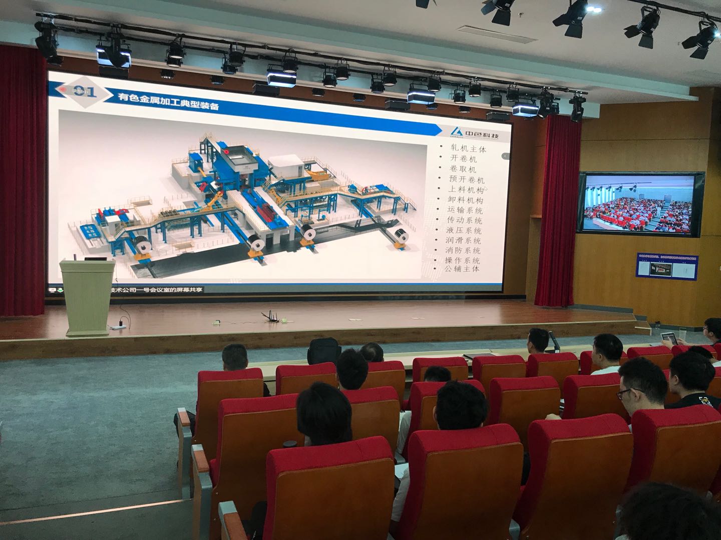 中色科技智能技术公司副总经理王鹏高级工程师作了“有色金属工业互联网平台”报告,介绍了工业互联网平台的发展过程和在有色金属行业实际应用案例;吴瑞蕤部长作了“有色金属加工自动化系统设计”报告,详细说明了自动化系统的组成、控制和设计。