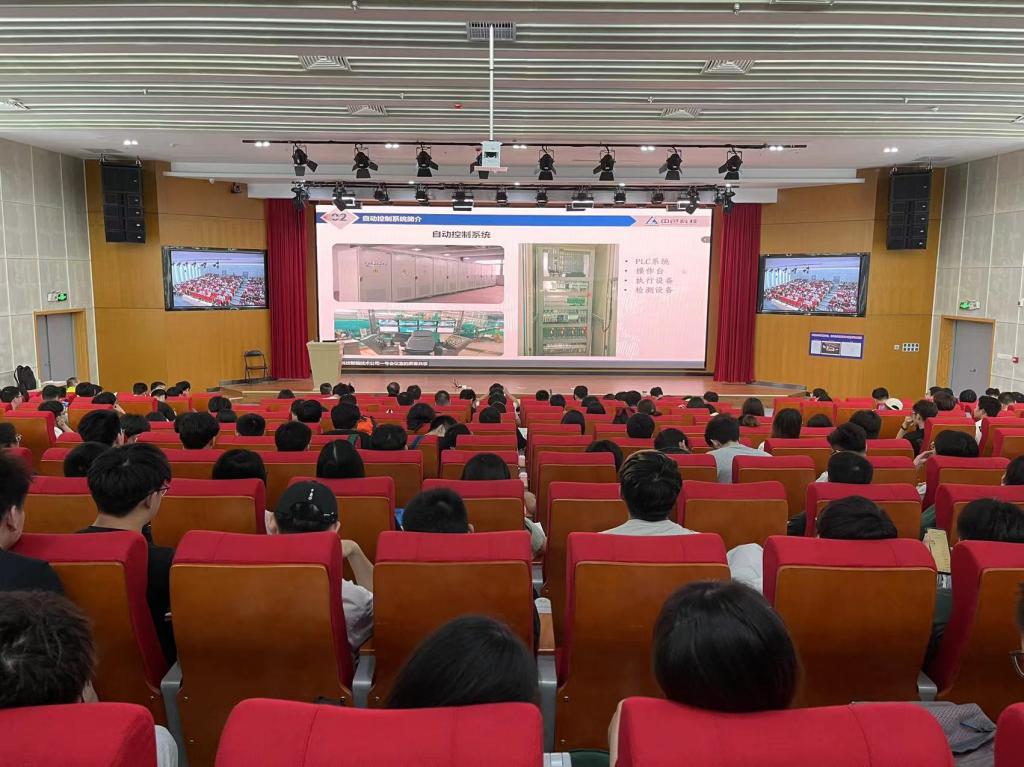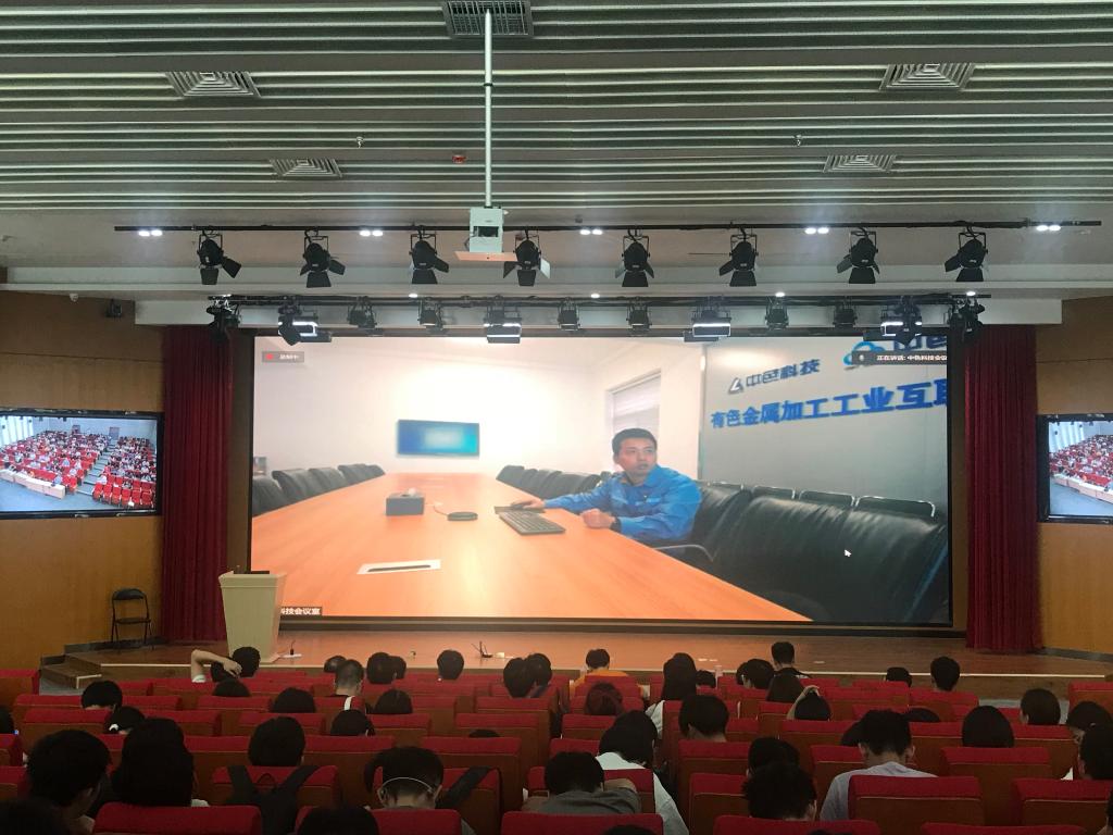 宁波金田股份有限公司智能制造研究院张海珍院长介绍了有色行业数字化工厂解决方案,新疆众和股份有限公司制造总监赵景申正高级工程师对数字化工厂要点探析,提出了铝箔、高纯铝、电极箔、电厂等细分产业的智能解决方案,介绍了数字化工厂所需企业技术标准和规范。聘请的专家分别从智能制造、有色冶金工业互联网和自动化装备等领域向同学们作了相关专题报告,并回答了同学们所提的问题,拓展了同学们的视野和前沿技术了解。周日报告中苏州再生金属设计院李鹏辉总工程师就再生铝的应用新领域相关主题作了报告,介绍了再生变形铝合金的应用和再生铝生产工艺,鼓励同学们学会资源再利用,爱护环境。中色科技股份有限公司何向问工程师就铝熔铸技术现状和发展前景向同学们进行了详细介绍,从自己专业角度阐明了铝铸锭的发展方向,引发了同学们的热烈反响。中色科技公司王怀玉工程师就铝带冷轧机给同学们进行了介绍,详细阐明了冷轧机的工作原理和同学们关心的自动化专业课本知识在工业现场的实际应用。李广杰高级工程师对连续热处理器生产线相关技术进行介绍和同学们进行了讨论,对生产线的设备配置和市场占用率进行了相关说明,激发同学们对工业生产现场的强烈兴趣。