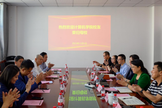 交流座谈环节,湖南科创信息技术股份有限公司董事长费耀平、南京维拓科技股份有限公司副会长杨凌、深圳市华思旭科技有限公司董事长雷云、甘肃远瞻信息科技有限责任公司董事长苏丹、湖南华信软件股份有限公司董事长谢向东5位校友代表在会上进行了交流发言,表达了对母校的感激之情,寄语母校发展越来越好。他们分别汇报了近年来各自在岗位上的发展,从加强校友交流、推动校企合作、助力科技成果转化、提高学生实践应用能力等方面为学院积极建言献策。大家纷纷表示,将立足本职工作,搭建母校与本职工作的桥梁纽带,抓住新机遇,找到结合点,助力人才培养,赋能核心科技成果转化落地,全力支持计算机学院发展。学院领导老师对校友提出的合作需求作了积极回应。据悉,下一步,学院将加强与校友企业对接,拓展合作空间。