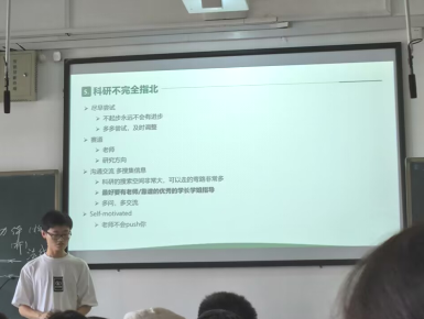 软件工程2102班的蔡艺硕同学分享了关于打好基础、把握机会和勇敢探索的观点。他强调了勇于行动和尝试的重要性,在心态建设、学习经验、比赛科研三个方面分享了经验,并鼓励大一新生积极探索不同领域,把握住每一次成长的机会。