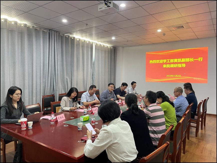 黄凯副部长认为,学院工作思路清晰、基础扎实、特点突出,尤其在创新创业、学业服务与发展、诚信教育和校企协同育人等方面效果明显。他根据自身体会,就辅导员发展成长、学生就业、竞赛及校企合作方式等问题提出了指导性建议。他强调:要加强学生工作的信息化建设,整合相关资源,多做总结推广,减少重复性工作,提高工作效率。