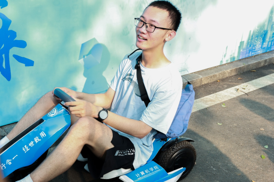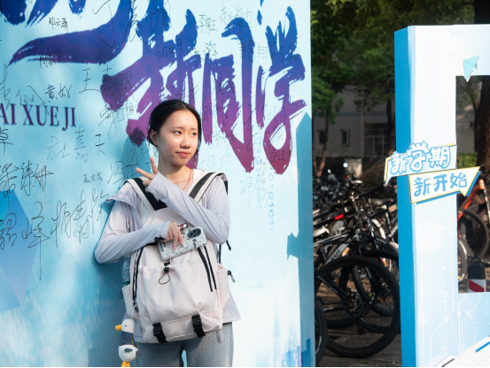眼前满是朝气蓬勃的面孔与自信活泼的笑容。新同学们青春靓丽,意气风发,为学院注入生气与活力。他们尝试驾驶蓝色迎新卡丁车,在“‘程’前启后,‘计’往开来”展板上留下自己的独属签名,在各个学院组织招新海报前驻足,充满对未来的希冀……学院的万事万物颇具新鲜感。签字、合影、采访,陪同的家长们笑意盈盈,霎时阳光灿烂,暖意融融。