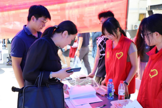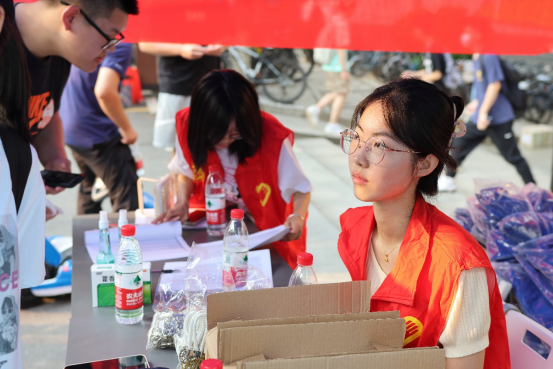 从清晨到黑夜,从新校区至南校区,志愿者们忙碌的身影穿梭在迎新点和宿舍楼间。他们搬运行李、登记注册、分发纪念品、耐心介绍学校学院情况,真挚热情地为往来的新生及家长提供帮助。烈日炎炎,骄阳似火,热浪没有阻拦他们的脚步,汗水映衬下,红色的志愿者服显得更加亮眼。