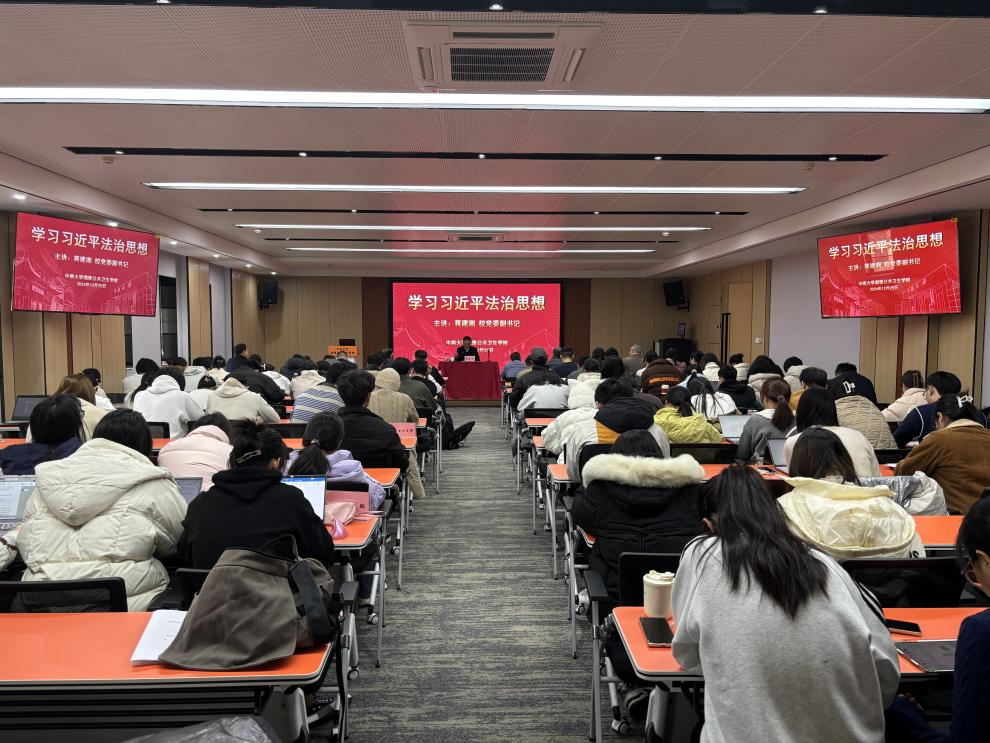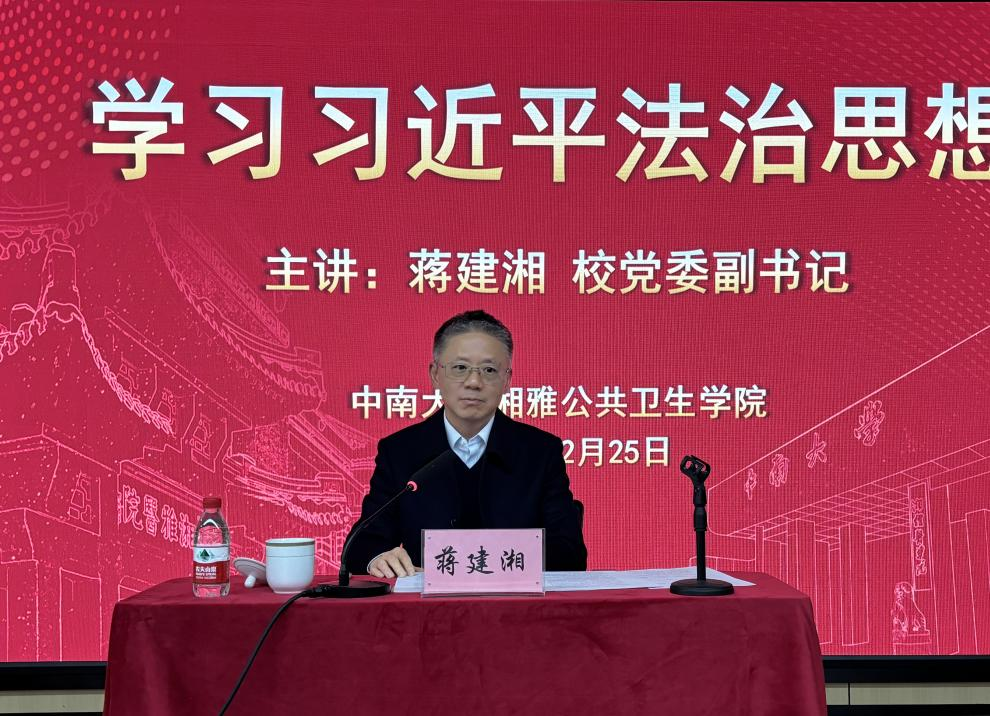 2024年12月25日上午,党课学习暨党委理论学习中心组学习交流会顺利开展。校党委副书记蒋建湘在湘雅公共卫生学院622讲授“学习习近平法治思想”专题党课,湘雅公共卫生学院与计算机学院师生代表参加学习。