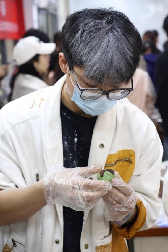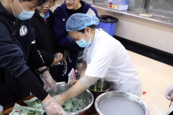 活动现场,研究生会精心准备了新鲜的艾草汁、糯米粉、馅料等食材和制作工具。同学们分成若干小组,围坐在一起,在专业师傅的指导下,开启了青团制作之旅。揉面、包馅、成型,每一个步骤大家都全神贯注。有的同学手法娴熟,不一会儿就做出了圆润饱满的青团;有的同学则是初次尝试,在制作过程中遇到了不少小问题,但在同伴的帮助和老师的指导下,也逐渐掌握了技巧。现场欢声笑语不断,大家在相互协作的劳动中增进了彼此的了解和友谊。