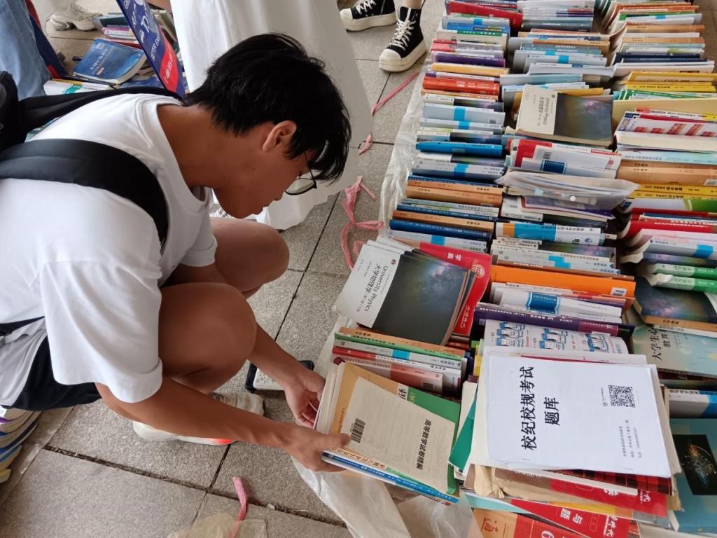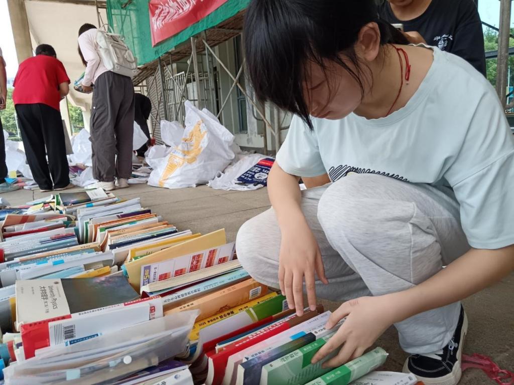 活动持续至下午17:30,大部分书籍被领取一空。通过前期工作的积极宣传,今年的活动参与人数和书籍数量都有显著增长,同学们满心欢喜地带着书籍离开,脸上洋溢着满足的笑容。他们手中捧着的不仅是书籍,更是学长学姐们传递的智慧与希望。