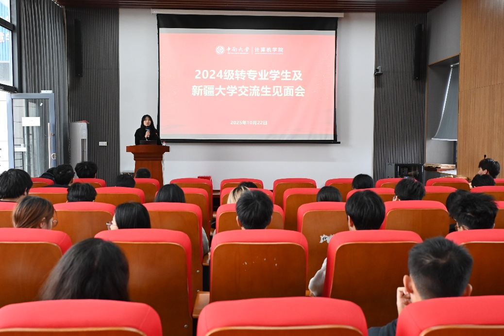 为促进新转入学生和交流生及时适应新专业、融入新集体,2025年10月22日中午,计算机学院2024级转专业学生及新疆大学交流生见面会于信息楼535召开。计算机学院党委副书记王新辉,24级本科生辅导员赵赫、达泽文,23级转专业学生代表丁浩洋,24级全体转专业学生、新疆大学交流生参加会议。