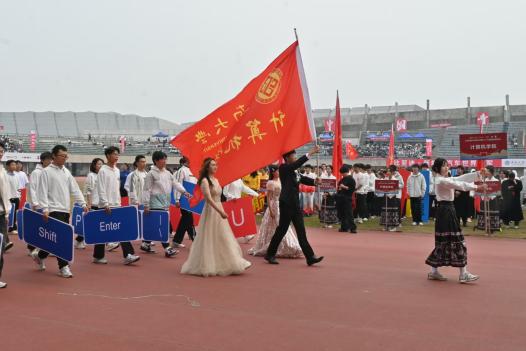 各学院表演方阵依次入场,神采奕奕的中南学子们似初生的骄阳,在主席台前尽显青春风采。计算机学院学予以代码为笔,在数字世界勾勒创新蓝图;以算法为钥,开启人工智能的未知之门,在此次开幕式中,他们手持键盘,敲出“HELLO CSU”,以独特方式彰显对中南的深情。
