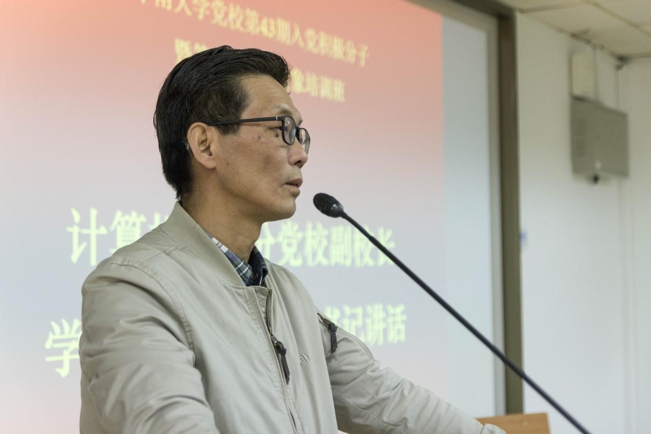 大会第二项,由学院党委史建权副书记讲话。史书记从三个方面发表了讲话:第一,伟大的时代需要热血青年,青年也需要伟大的时代。毛主席曾说过“世界是你们的,也是我们的,但归根结底是你们的”,实现国家新目标也需要广大优秀青年的努力。第二,如何成为一个合格的共产党员。青年必须认真学习马克思主义理论,弄清楚马克思主义内涵,坚定自己的理想信念。第三,青年要通过行动引领更多学生投入到伟大中华民族的复兴征程上。史书记希望每一位学员都能够发挥自己的特点,在组织的培养下,在自己的努力下早日成为合格的共产党员。