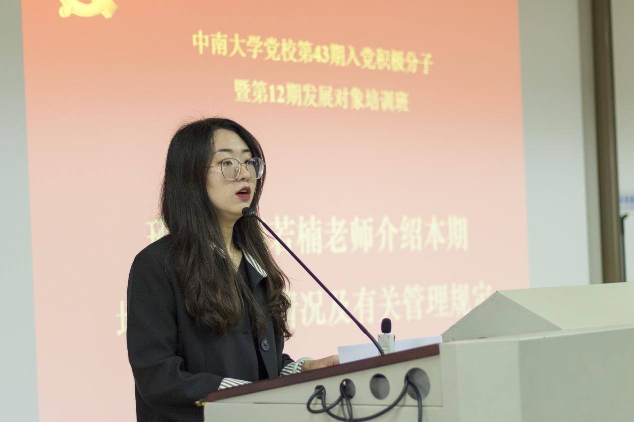 大会最后一项,由李若楠老师介绍本期培训班基本情况及有关管理规定。李老师介绍了本期分班情况及班委,并公布了相关教学安排及请假程序。她要求学员认真阅读学员须知,做好笔记,遵守党课纪律,并希望学员端正态度,认真对待培训课,学有所得,将党的理想信念和精神内化于心、外化于形。