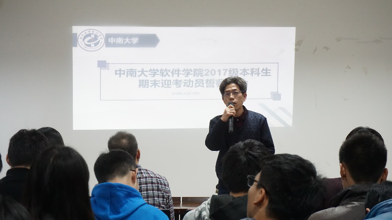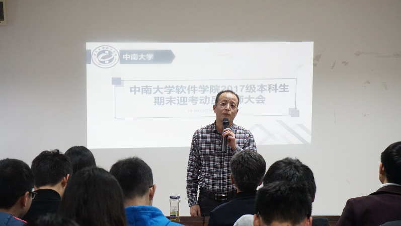 在期末考试来临之际,为了有效调动同学们期末考试复习积极性,软件学院于12月18日下午召开2017级本科生年级大会暨期末考试动员誓师大会,院长助理、学工办主任师雷宏老师、1704班班导师谭长庚教授、17级辅导员刘珍珍老师出席本次会议,全体17级本科生参加了此次会议。大会由年级长刘振宇同学主持。