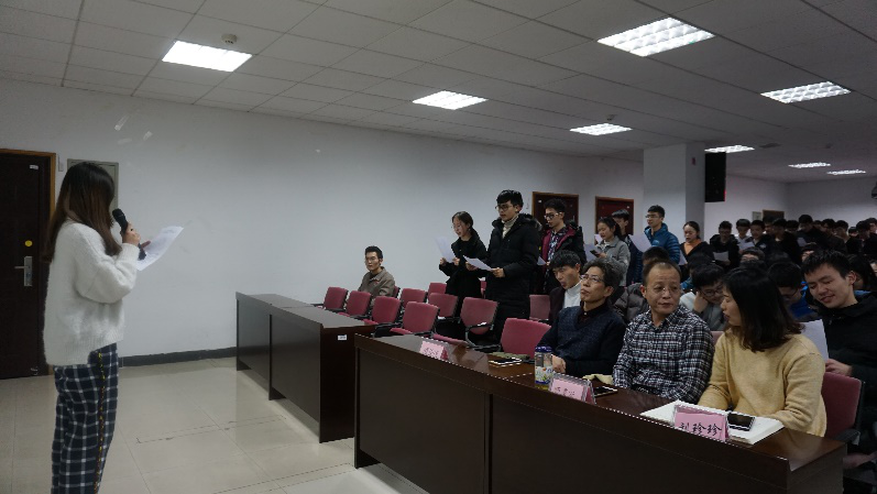 接着,谭长庚教授作为教师代表讲话。谭教授强调:要实现零挂科班级并不容易,这是大家面对的挑战,也是大家追求的目标。他认为,针对期末考试,每个班级都有自己的具体措施,这些措施可以相互学习与借鉴,大家还要多多交流,针对班级中在学习上有困难的同学进行帮助,当然自我感觉有弱势的同学更应该好好学习,这样才能打造一个优秀的集体,才有希望实现零挂科班级这一美好期望。最后,谭老师祝大家在期末考试中实现零挂科并取得优异的成绩,回家过一个好年。