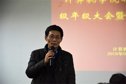 首先谢老师对16级全体同学上学期的工作进行总结,并对同学们新学期的重点工作进行部署。他希望同学们在新的学期树立新目标,在上一学期的基础上继续改进和完善自己,在认真学习的过程中,也要积极参加体育锻炼。新学期伊始,希望补考的同学认真复习,遵从学院考试安排,遵守考试纪律。16级的同学们即将面临就业还是读研的艰难选择,谢老师希望大家认真思考,谨慎选择,并就这个问题向同学们提供了一些建议。