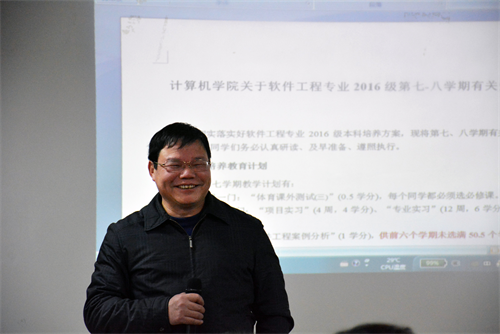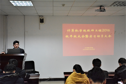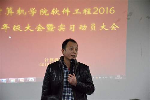 为更好开展新学期各项工作、解决同学们实习相关疑问,计算机学院软件工程2016级年级大会暨实习动员大会于3月2日上午九点半在铁道校区二综411报告厅举办。计算机学院党委副书记史建权,副院长奎晓燕,学工办主任师雷宏,软件工程系费洪晓副教授以及分团委书记、软件工程16级辅导员谢怀平出席会议。