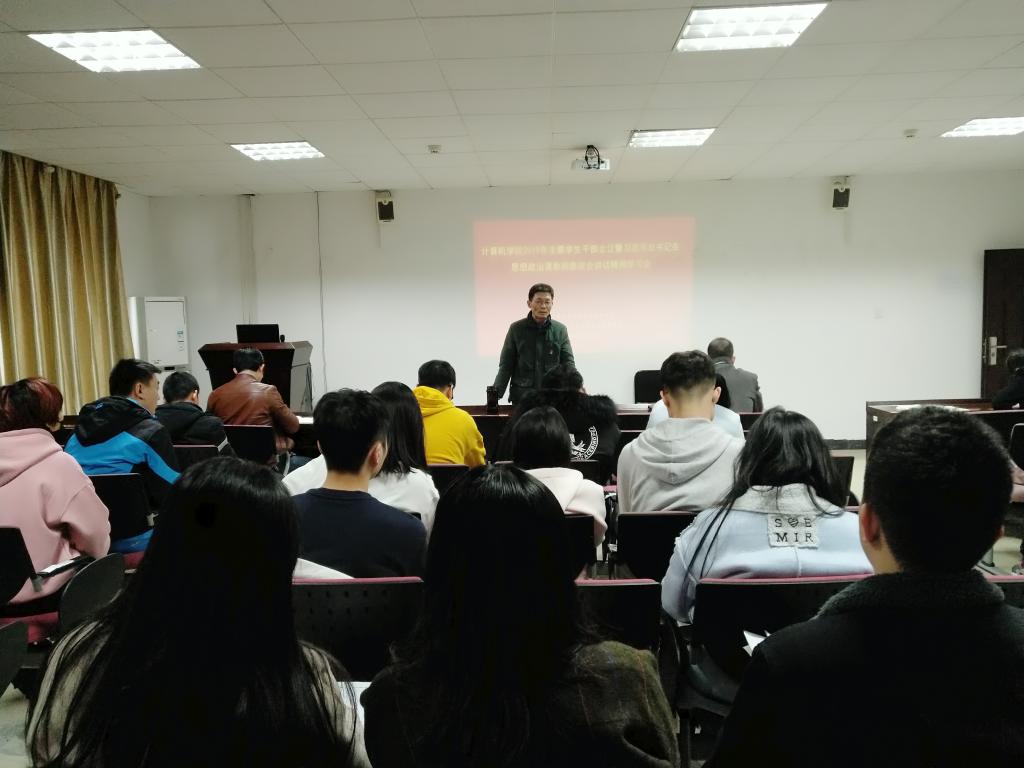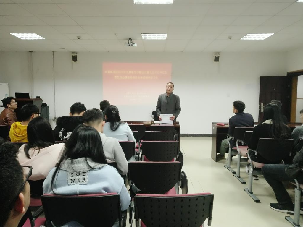 3月22日上午10点,计算机学院在铁道校区二综411报告厅举办了2019年主要学生干部会议暨习近平总书记在思想政治课教师座谈会讲话精神学习会。计算机学院党委史建权副书记,学工办主任师雷宏老师,分团委书记谢怀平老师,学生会指导教师张艳武、李诚老师出席此次会议。