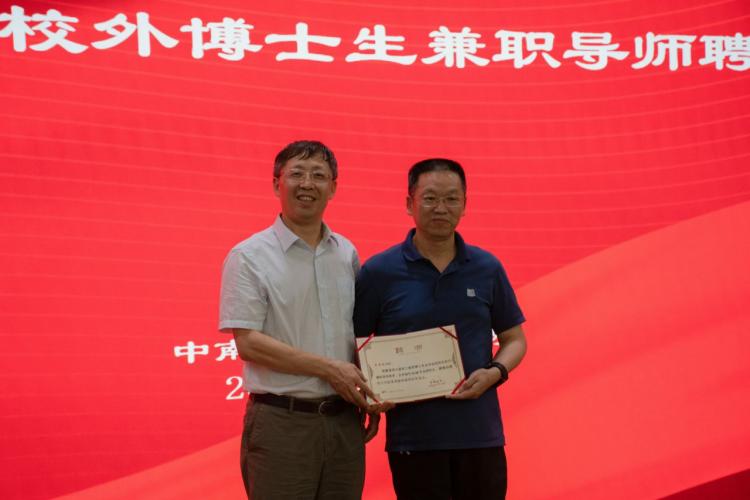 在一片掌声中,报告会拉开了序幕。会议第一项,由王建新院长介绍主讲嘉宾并致欢迎辞。接着,王院长向夏博辉颁发了我校工程类博士生校外兼职导师的聘书,邀其合作指导博士研究生,共同培养工程博士。