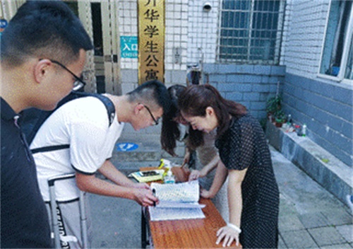辅导员“一对一”服务。学院学工办提前建立“一人一档”,“一对一”掌握学生信息,落实每日健康打卡、核实返校行程,做到“底数清、情况明”,确保《报到须知》各项要求落实到位。9月4日,学院党总支副书记刘亚红、辅导员连选和高佩茹前往升华公寓接待站,协助做好本院学生“一验二测三检四扫”报到流程,并到学生住宿楼栋配合做好返校学生信息核对、复测体温,及时掌握学生返校动态,第一时间了解学生需求,解答学生疑惑,解决学生困难,努力让每一位返校学生感受到学院的关怀和温暖。