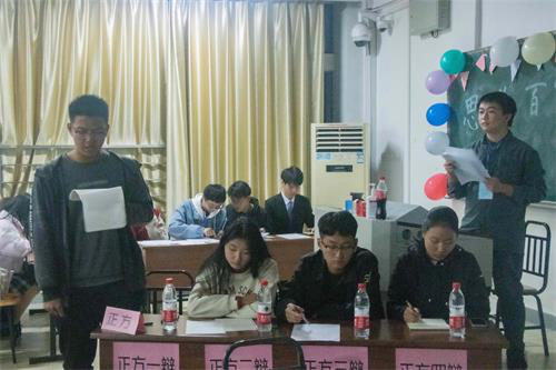 11月28日下午6点50分,航空航天学院第八届“思学百‘辩’,建功青春”辩论赛在新校区A310教室举行。本次辩论赛由本科生李若华同学主持,并邀请分团委书记高佩茹老师,校辩论队马凯学长,及学院团委学生会主席团成员担任辩论赛的评委,来自大一的四支队伍参与了本次辩论赛。