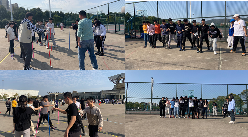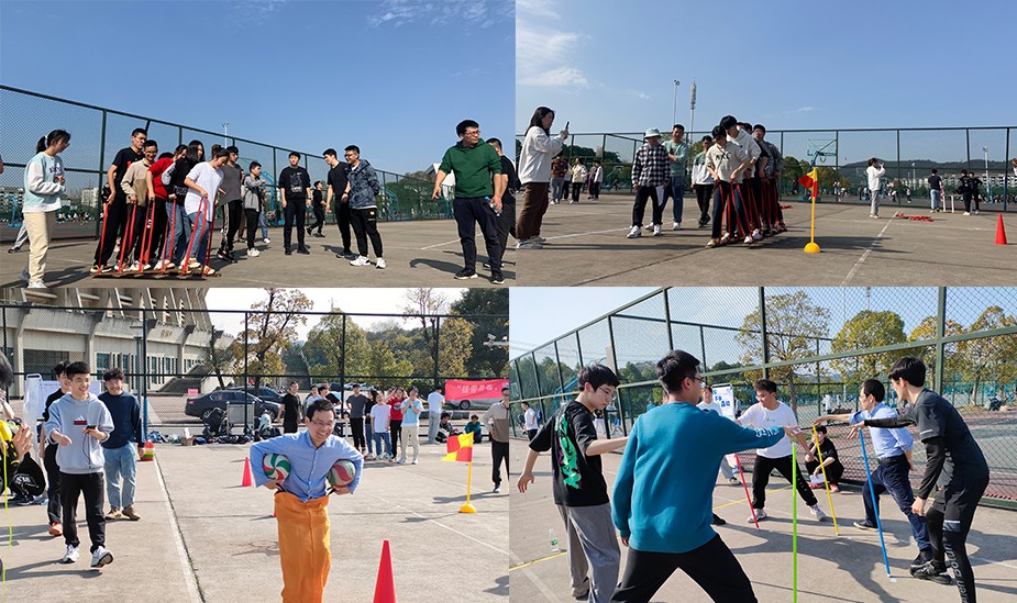 十人十一足、“不倒森林”两项比赛更考验团队的配合能力,在灿烂阳光下、清风吹拂中,老师与同学们在团队合作中配合默契,赢得场下同学们的喝彩。