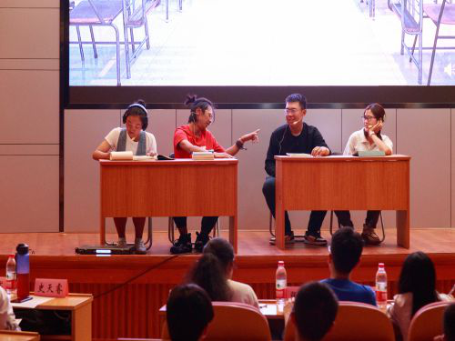 表演结束后,评委们老师和同学们对三组表演进行点评,表扬了演员们对主题的理解,提出了三组同学在剧情、技巧和人物形象方面可以改进的地方,如情感应更突出、台词吐词要清晰,角色定位要准确等等。最后王丹老师充分肯定了各个剧组的付出,也从校园心理情景剧的特点上提出既要贴近主题充分展示心理冲突、引发共鸣,也要利用相应的心理剧技术表达演员情感和心理过程。