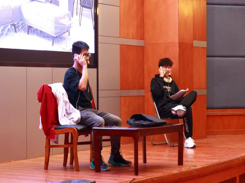在心助会成员陆杨昊欣的歌曲暖场以及主持人开场白后,大赛拉开了序幕。凭借参赛同学对剧本的个性解读和独到演绎,三个剧组的演出呈现出了各自独特的精彩。