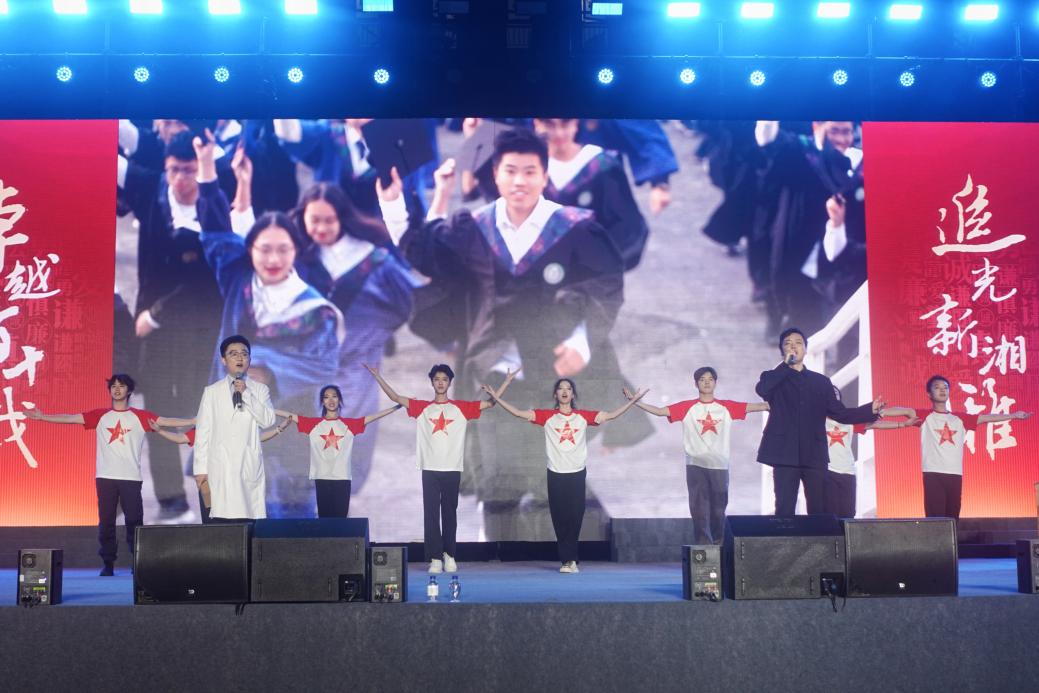 湘雅青年教职工代表胡丁佳、肖铂洋、陈翔宇带来歌曲串烧《我期待》《天地龙鳞》《你的答案》,激情澎湃,歌声嘹亮,唱出了对湘雅的热切祝福。