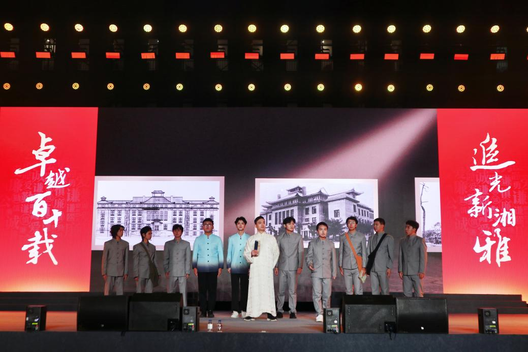 情景表演《湘雅第一课》通过湘雅师生的演绎,展现了颜福庆老校长“为人群服务”的朴素精神。湘雅医学院创始人之一曹典球先生的侄子、湘剧国家级传承人、梅花奖得主曹汝龙先生携侄女湘剧演员曹威治表演湘剧名段《沁园春·长沙》,仿佛将观众带回了“独立寒秋,湘江北去,橘子洲头”的峥嵘岁月,更让观众回顾毛泽东与湘雅学子在湘水之畔所建立的深厚革命情谊。音诗画《丰碑》再现了湘雅西迁这一湘雅医学历史承上启下的转折点,书写着湘雅医学的文化丰碑。