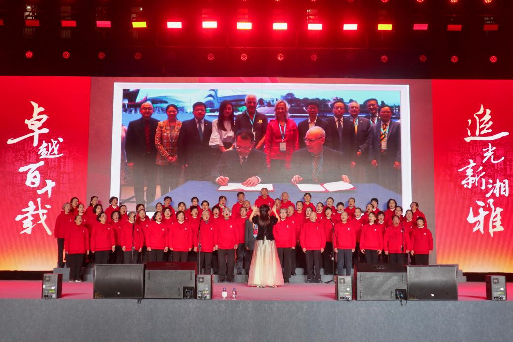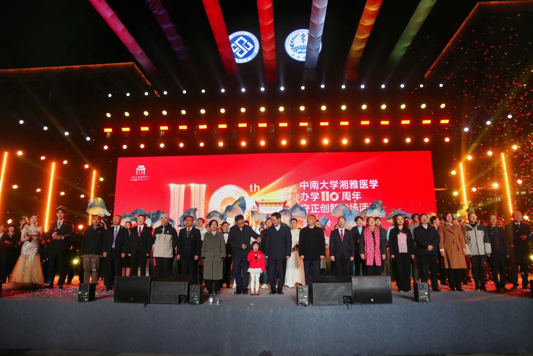 张艺、陈梅明主唱的《湘雅正当年》以歌舞展演的形式为活动画上了圆满的句号。璀璨的灯光下,校领导、学校机关部处、湘雅医学院、湘雅各二级学院及附属医院领导集体穿越“时光隧道”,登上舞台;四岁的绵绵小朋友作为湘雅子弟代表领唱《湘雅医学院院歌》。全场演职人员和观众在此刻共同感受william威廉英国官网湘雅医学办学110周年的荣耀与梦想。