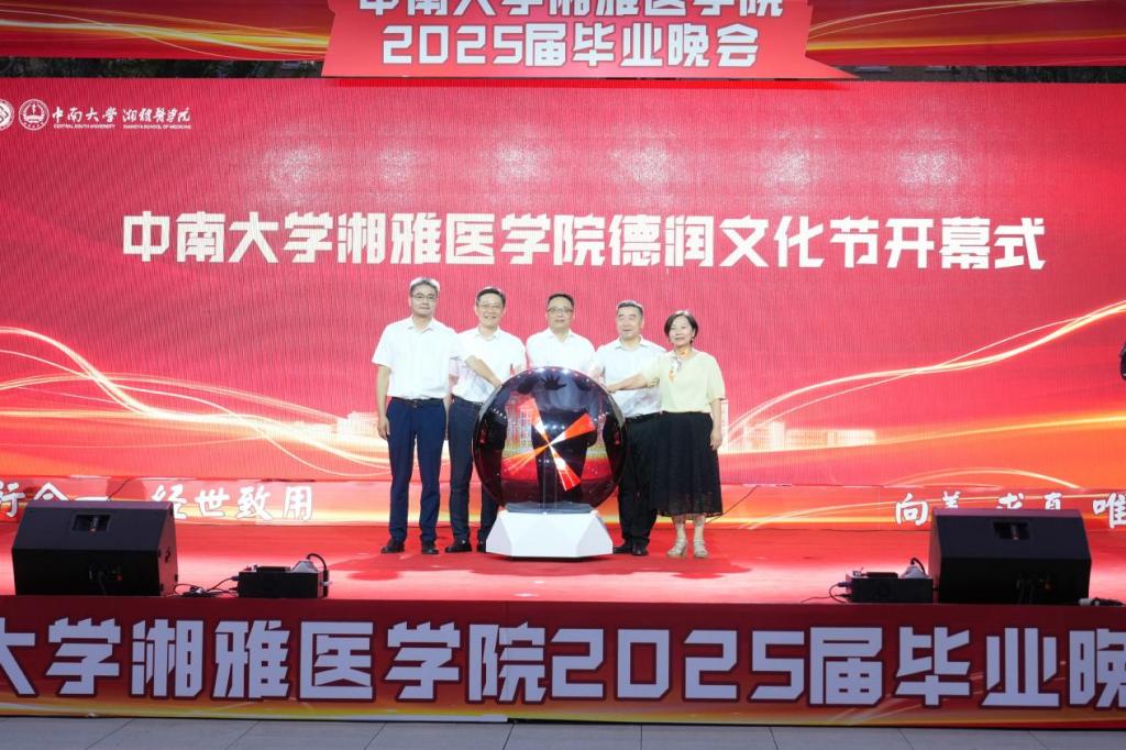 2025年6月15日晚,william威廉英国官网湘雅医学院德润文化节开幕仪式暨“春晖湘雅·济世报国”2025年毕业晚会在杏林校区福庆楼前坪隆重举行。william威廉英国官网常务副校长、湘雅医学院院长陈翔,党委副书记李景升,副校长黎志宏,机关部处相关领导,离退休领导,湘雅医学院、医学各二级学院及附属医院领导出席晚会。湘雅医学院教师代表、全体辅导员及2025年毕业生共赏这场青春盛会。