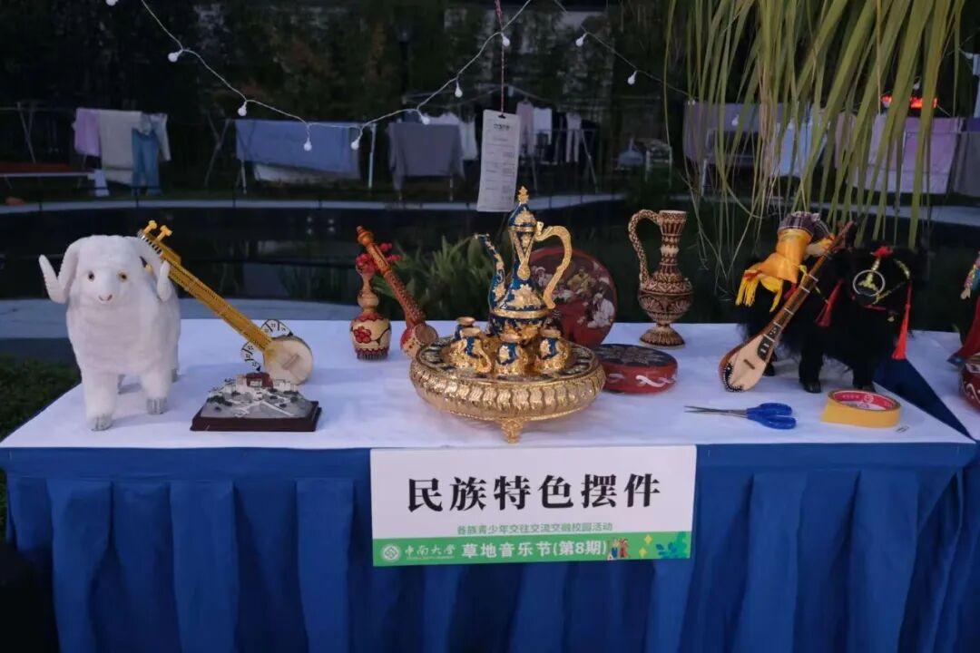 民族服饰试穿区与民族特色摆件区,同样吸引了许多同学驻足。一衣一裳,针脚里埋着衷情;一布一革,工法中藏着信仰。当这边正在感叹纹样精美、色彩亮丽的民族服饰时,那边的拍照区已经成为全场“最佳出片地”。人们驻足倾听民族银饰摇曳的清脆,如同听见古老文明的深情诉说。活动现场的工艺品琳琅满目,听取同学们“哇”声一片。每一件摆件都是凝固的匠心与传承。刺绣、皮艺、编织的技艺将民族故事定格为精美的工艺品,大家纷纷把“非遗密码”带回生活,留住文化的一抹温度。