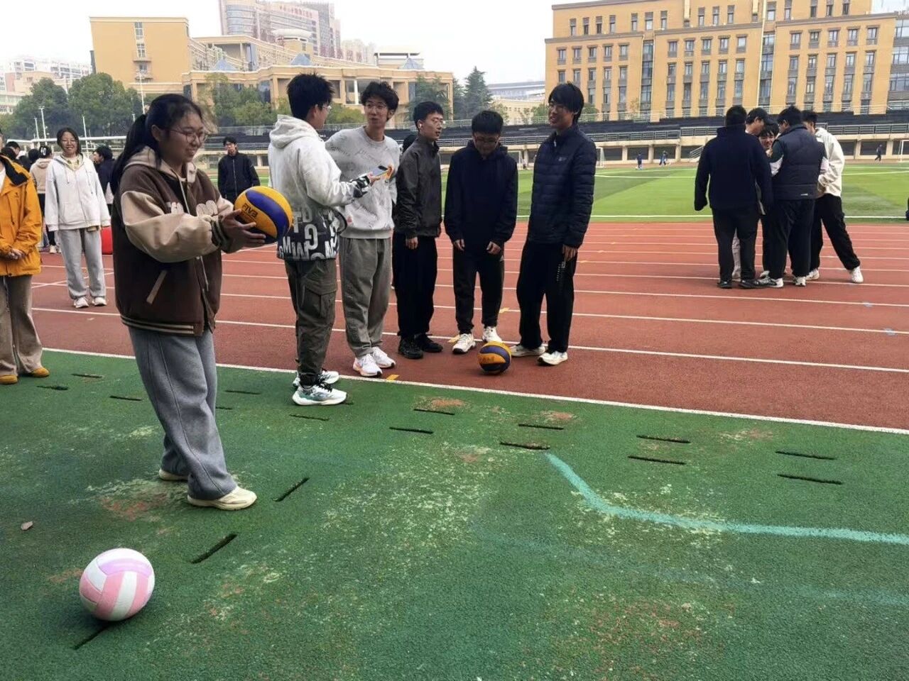 这不仅是力量的比拼,更是精准度与创造力的较量。队员们站在5米外,单手滚动排球瞄准瓶子,眼神专注、动作沉稳。“砰!”随着球落地,瓶子应声倒地,现场立即响起热烈的喝彩声;即便未能击倒瓶子,大家也毫不气馁,为队友的勇敢尝试鼓掌加油。每一次滚动都是对专注力的考验,每一次得分都凝聚着努力与运气。