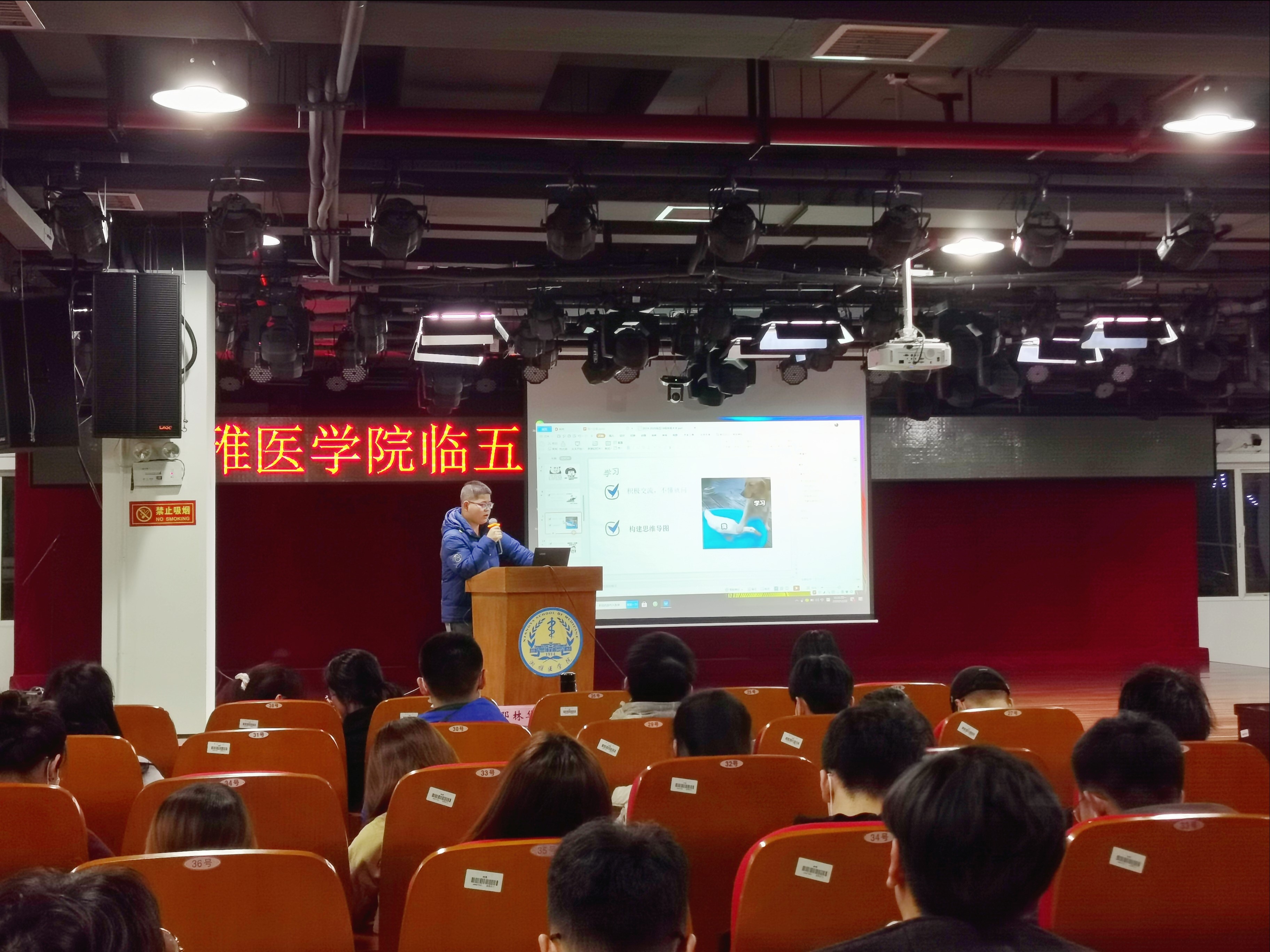 2020年12月29日晚6:30,湘雅医学院2018级临床五年制年级大会在湘雅新校区学生活动中心圆满召开。出席本次会议的有临五18级辅导员王丹老师以及全体学生。此外,大会还特邀请了17级附一的邓林华学长、扶鑫学姐,17级附二的武明阳学姐到场,为大家带来未来的学习、生活经验分享。