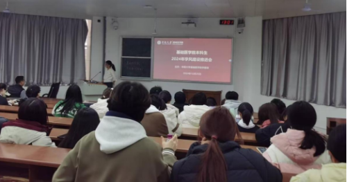 12月25日,为提升班级学习主动性,构建学院优良学风,基础医学院开展本科生学风建设推进会,院党委副书记冯虹老师、院团委书记周正老师出席。